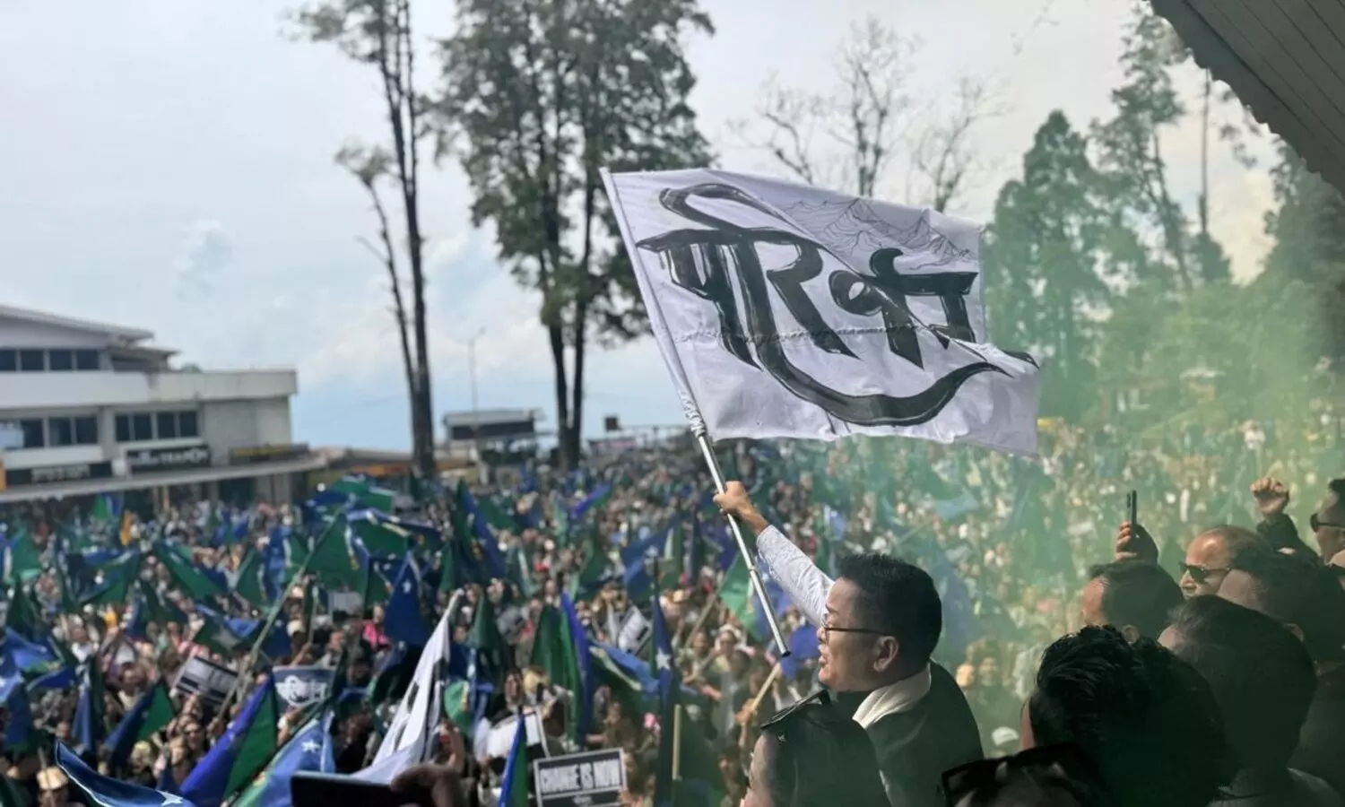 The nomination rally, which began from the Darjeeling Mall, had a festive atmosphere with rap music, coloured smoke and supporters waving party flags. Edwards, standing atop a vehicle, greeted the crowd as the procession moved through key areas of the town.