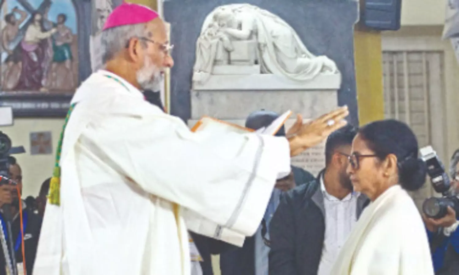 Mamata Banerjee at the Cathedral of the Most Holy Rosary on Christmas Eve. Taking to social media, she stated, ‘Christmas brings with it a message of unity, peace, and compassion that rises above all divisions. As I do every year, I had the honour of attending the midnight mass at the Cathedral of the Most Holy Rosary in Burrabazar, Kolkata. In the presence of the Archbishop of Calcutta, I joined in prayer, seeking blessings for the health, happiness, prosperity, and well-being of all. The warmth of the Christmas spirit lit up the lanes of Bengal, filling hearts with hope, peace, and togetherness. As this sacred season draws to a close, may its message of kindness, forgiveness, and compassion stay with us, guiding us into a New Year filled with optimism, brightness, and promise. Wishing everyone a joyful season and a wonderful year ahead’