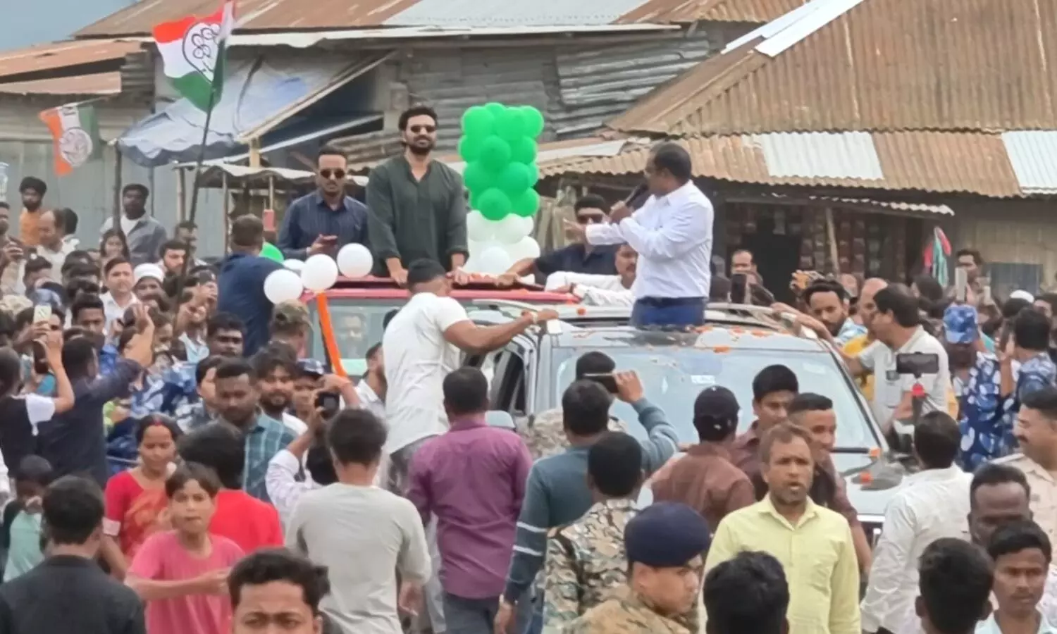 The rally witnessed an overwhelming turnout, with large crowds gathering to catch a glimpse of the popular actor. Many supporters were seen climbing rooftops and trees, while others eagerly captured the moment on their mobile phones.