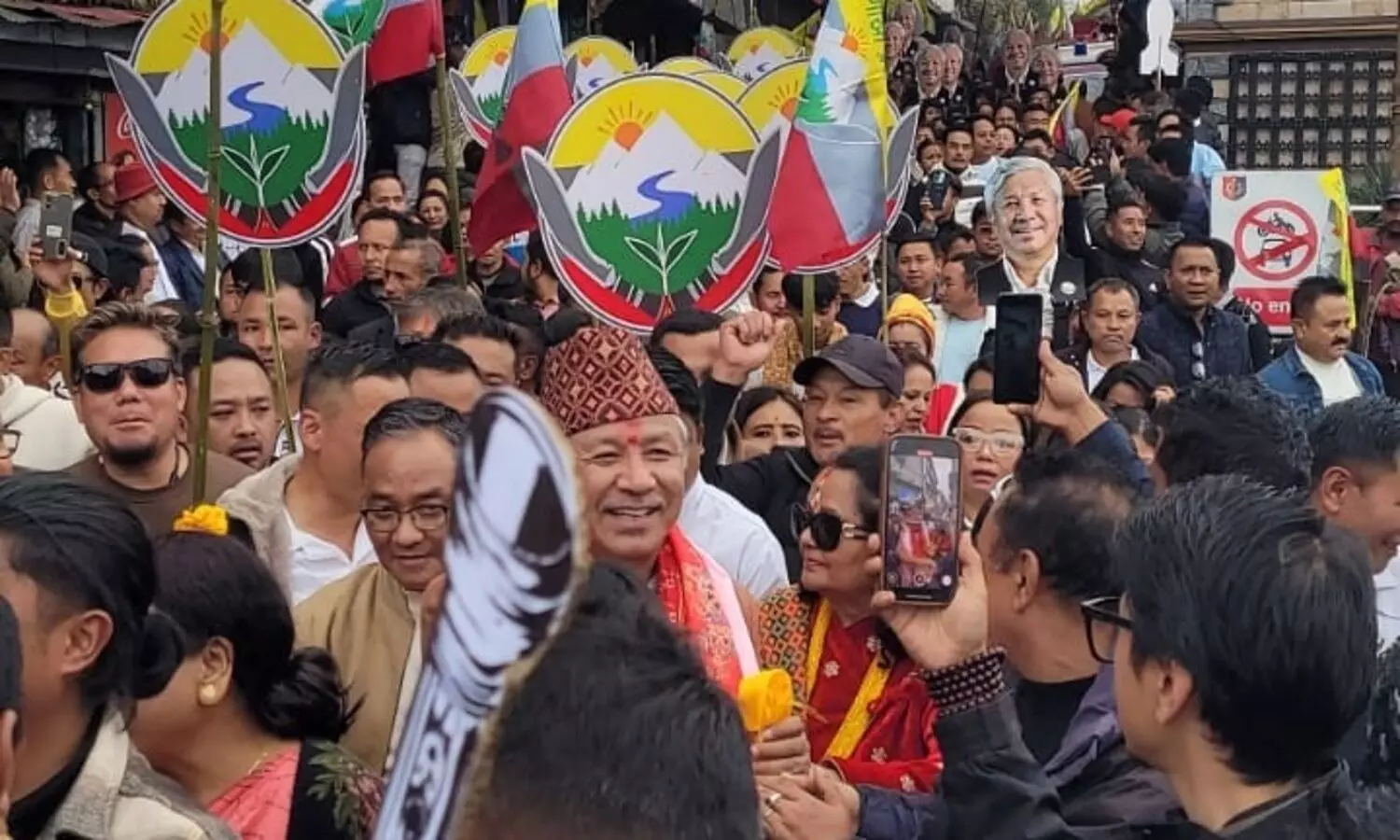 Darjeeling: Bouncing back from the ‘candle’ symbol goof-up, the Bharatiya Gorkha Prajatantrik Morcha (BGPM) candidates on Wednesday filed nominations for the Kurseong and Kalimpong Assembly Constituencies. In a show of strength in both places, mammoth rallies accompanied the candidates. The BGPM has now applied for the ‘battery torch” symbol.