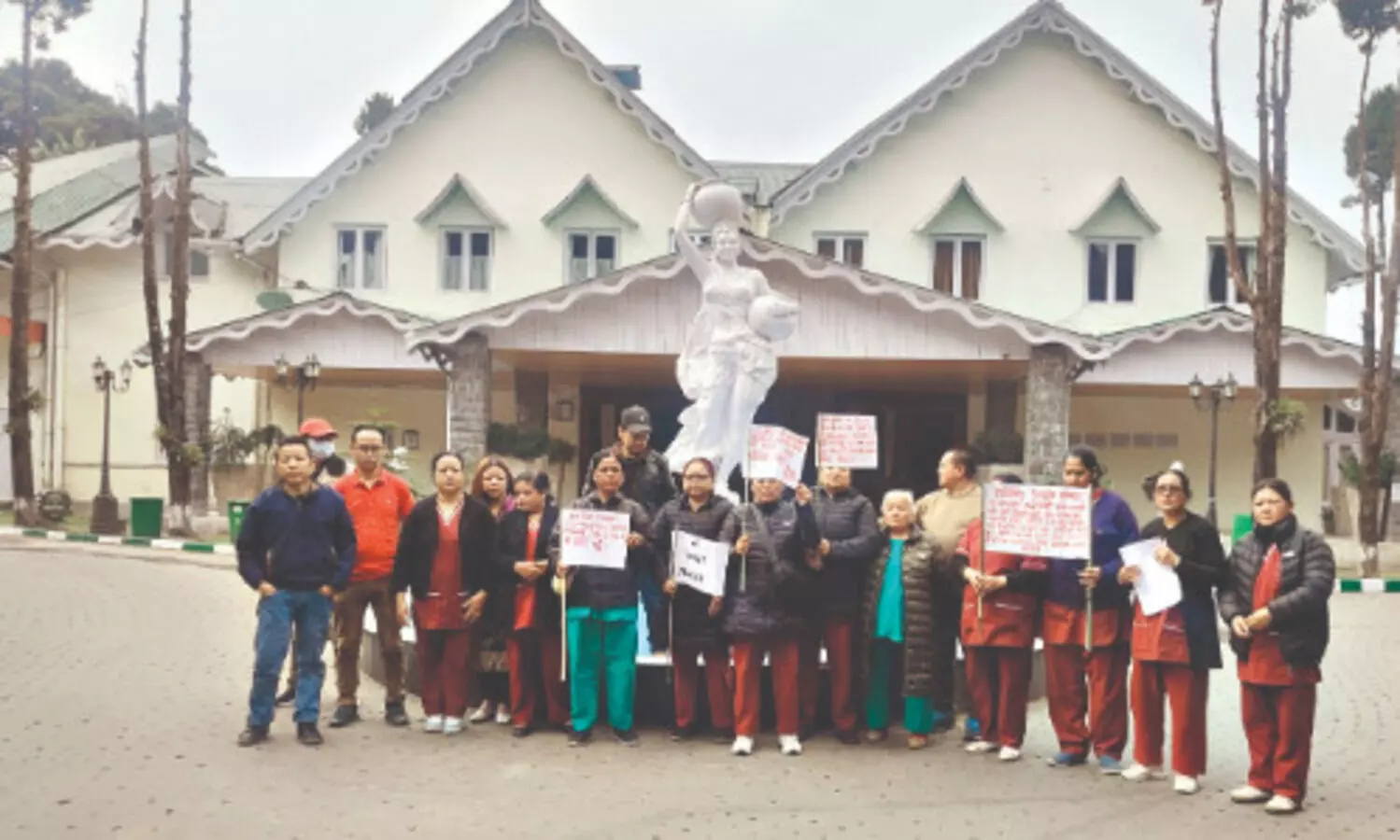 Darjeeling: The district hospital manual contingency workers under the GTA have launched a cease work demanding inclusion in the pay band system. They have started a sit-in demonstration at Lalkothi, the GTA secretariat in Darjeeling.