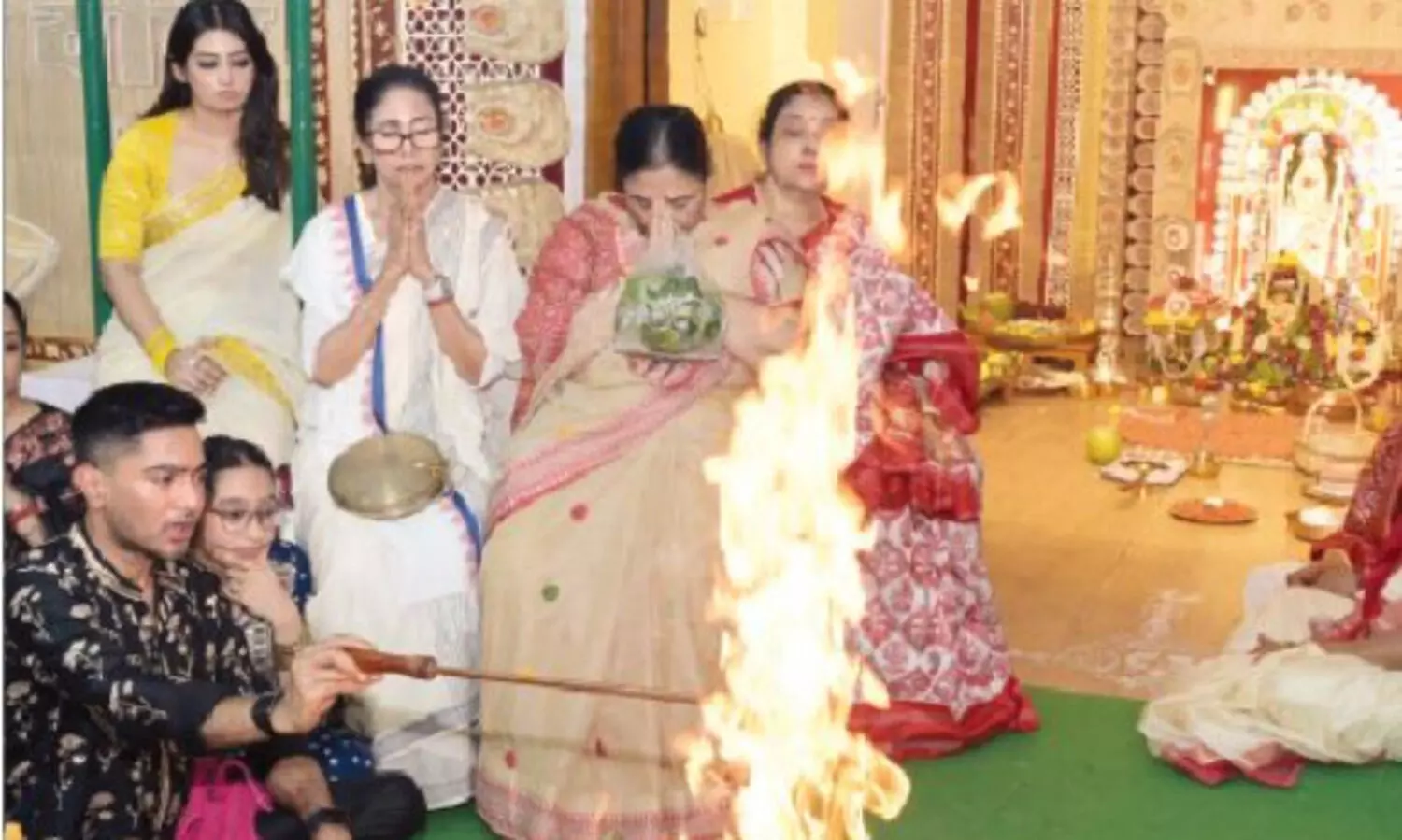 Like every year, she performed Kali Puja at her Kalighat residence, a tradition she has followed for a long time. Banerjee cooked ‘bhog’ and took part in rituals, clad in a cotton saree. Her party’s national general secretary, Abhishek Banerjee, attended the puja and participated in a ‘yagna’. Party leaders, MPs, MLAs, ministers, bureaucrats, industrialists, and artistes attended the puja.