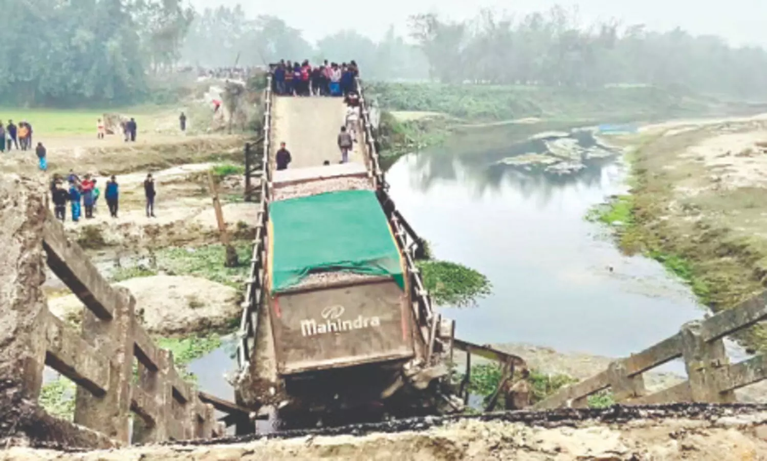 Cooch Behar: A bridge in the Baromashia area under Lalbazar Gram Panchayat collapsed on Friday morning after a dumper truck passed over it, triggering panic among local residents. The incident occurred as the truck was traveling from Sitalkuchi towards Sitai.