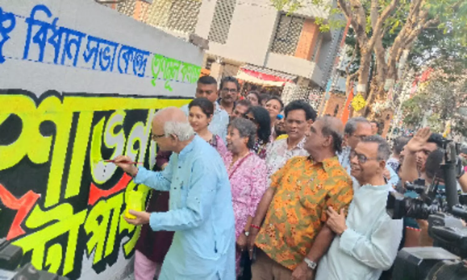 Kolkata: Trinamool Congress (TMC) veteran Sobhandeb Chattopadhyay on Wednesday kicked off his election campaign with wall writing in the Kankulia area of Ballygunge.