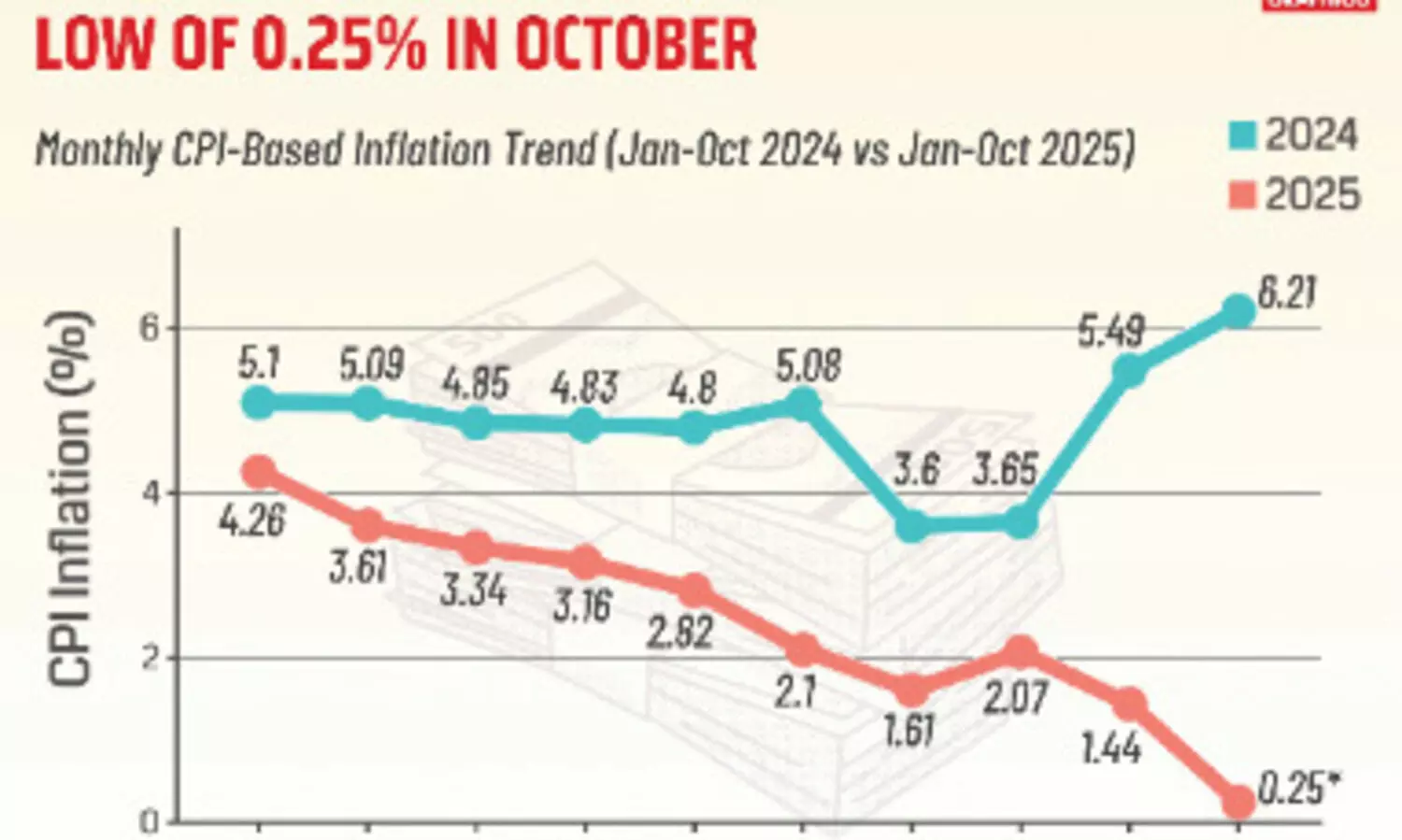 The inflation was 1.44 per cent in September and 6.21 per cent in October 2024.