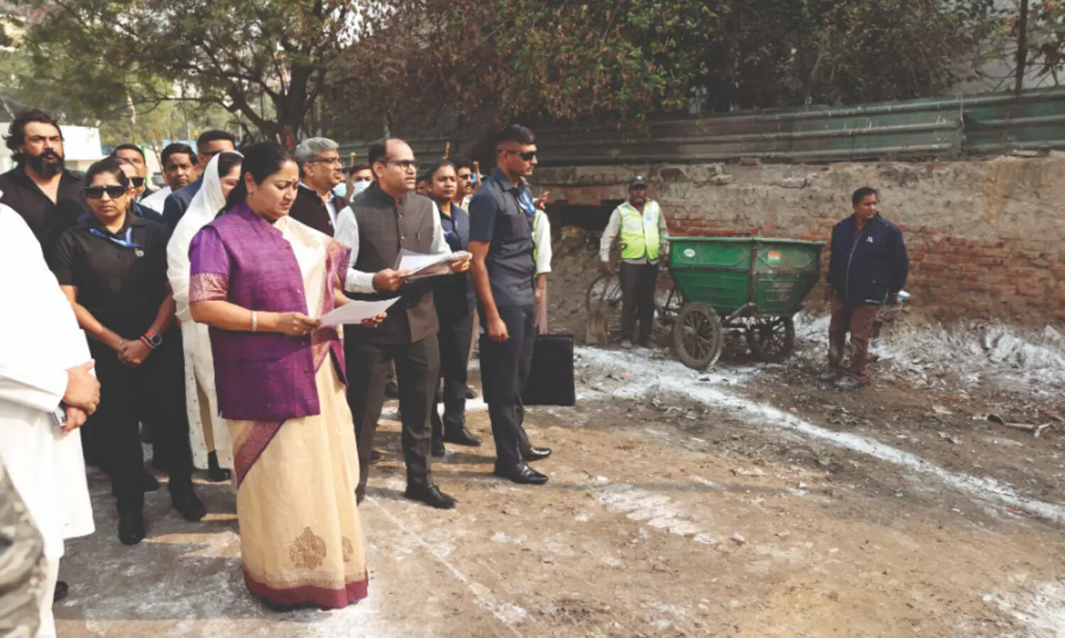 The field visit focused primarily on reviewing the status of cleanliness, waste management systems, and civic amenities in the two localities of South Delhi. Gupta inspected multiple CTU/GVP (Cleanliness Target Unit/Garbage Vulnerable Point) sites, the proposed construction and demolition (C&D) waste collection points, and the proposed Fixed Compactor Transfer Station (FCTS) in Tehkhand village. She also travelled to Tughlakabad village to review similar locations and assess progress on the upcoming C&D waste facility.