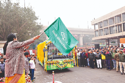 Highlighting pollution-control measures, she said automated vehicle emission testing centres were being set up at Nand Nagri, Tehkhand and Burari to streamline Pollution Under Control certification. “We are also launching the Pink Card facility for women soon to ensure seamless travel, and extending financial support for Phase IV of the Delhi Metro,” she said. Transport Minister Pankaj Kumar Singh said the government was committed to providing “clean, reliable and affordable” public transport. “The fully electric Dhaula Kuan–Dharuhera service will benefit office-goers, students and industrial workers commuting to the Gurugram–Manesar belt,” he said, adding that reduced dependence on private vehicles would help cut congestion and vehicular emissions.