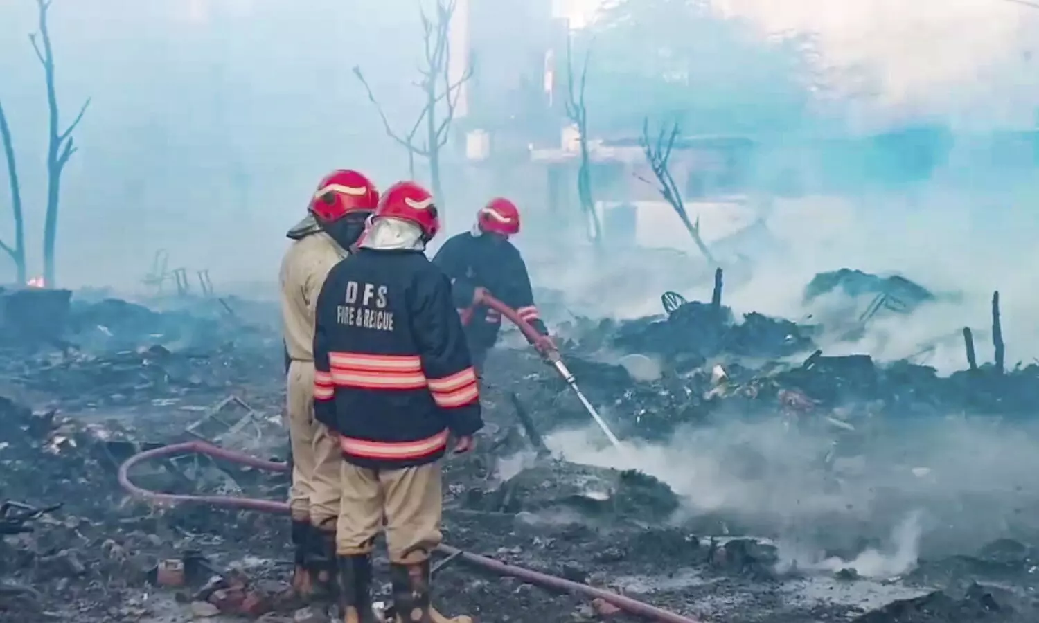 According to the DFS, a call regarding the blaze was received at around 4.15 am. "Teams reached the spot soon after the call was received and launched firefighting operations. The fire engulfed several shanties in the cluster," a fire official said. Preliminary information suggests that over 50 shanties were present in the area, many of which have been reduced to ashes in the blaze. Firefighters and local police personnel launched a rescue operation and managed to bring the fire under control by 6.30 am.