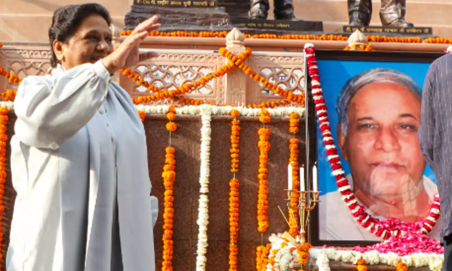 According to the party statement, BSP workers from 12 administrative divisions of Uttar Pradesh gathered at the Manyavar Shri Kanshiram Ji Memorial in the state capital to pay tributes to Kanshi Ram.
