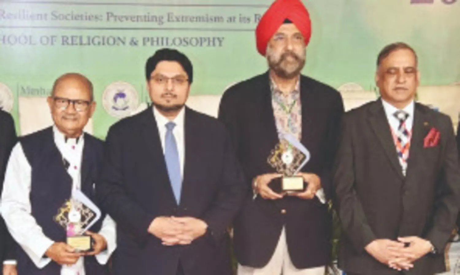 Tarunjit Singh Butalia receives lifetime achievement award during 8th International Conference on World Religions from Hussain Qadri Chairman (Right), SM Shahzad, Vice-Chancellor of Minhaj University (Left). Bishop Samuel Robert Azariah is also seen in the picture.