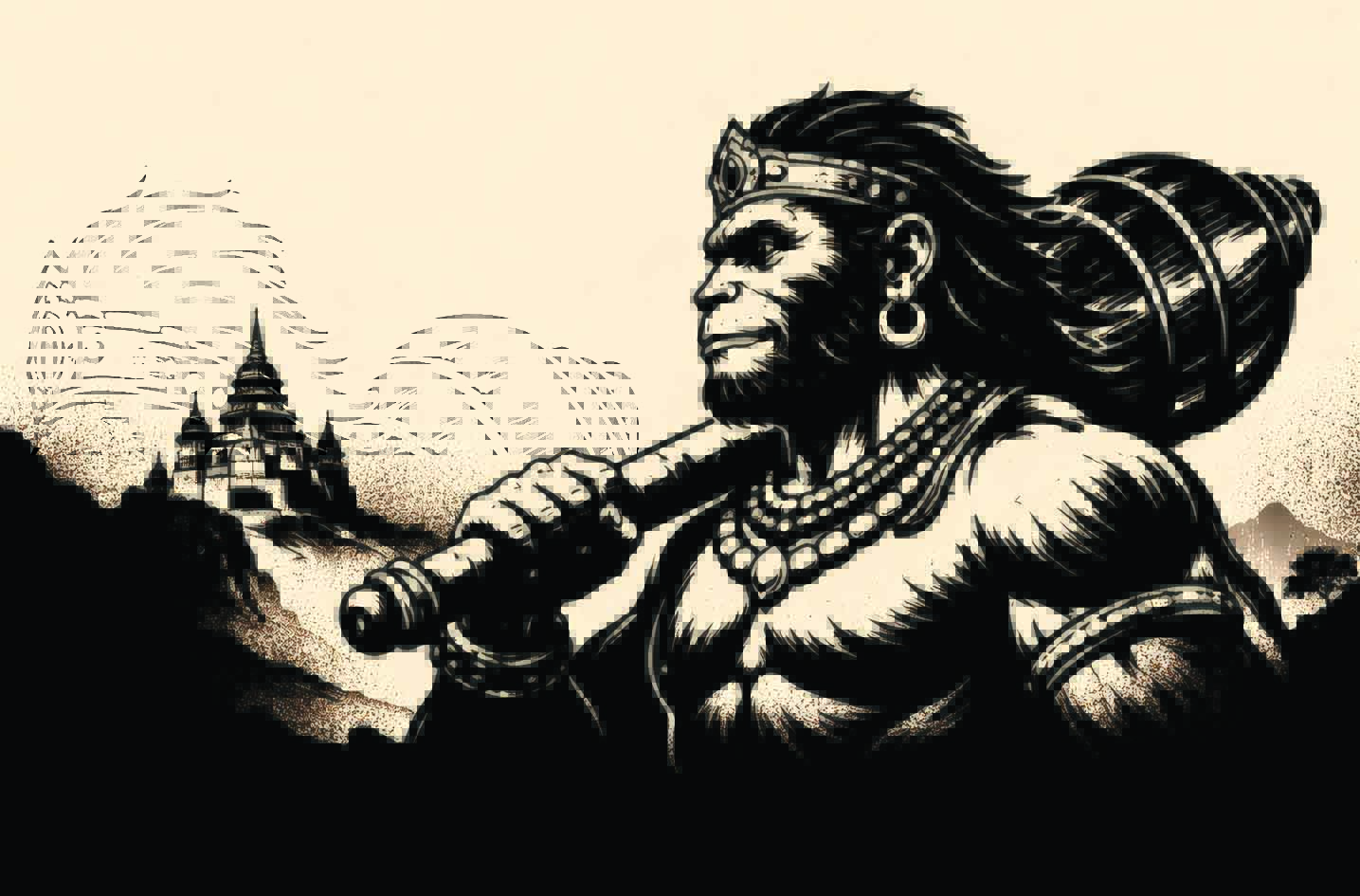 Sugriv, the younger brother of Vali (originally Bali), the ruler of Kishkindha, was driven out of the kingdom after a fateful misunderstanding with his brother. While accompanying Vali, who was pursuing a demon, he stood guard outside the cave where Vali was fighting the demon. From inside, he heard terrifying sounds and saw blood flow out. Assuming that Vali, renowned as a fearless warrior, had slayed the demon, he returned to Kishkindha, where he was reluctantly made king. However, when Vali returned alive, enraged at what he perceived as betrayal, he exiled Sugriv and even took his wife, Ruma. Sugriva’s fortunes changed when he encountered Ram during his banishment, who was then searching for Sita. Facilitated by Hanuman, they forged an alliance whereby Sugriv agreed to assist in finding Sita, while Ram would help him regain the kingdom of Kishkindha. It was as much an alliance of mutual benefit as it was of mutual convenience.