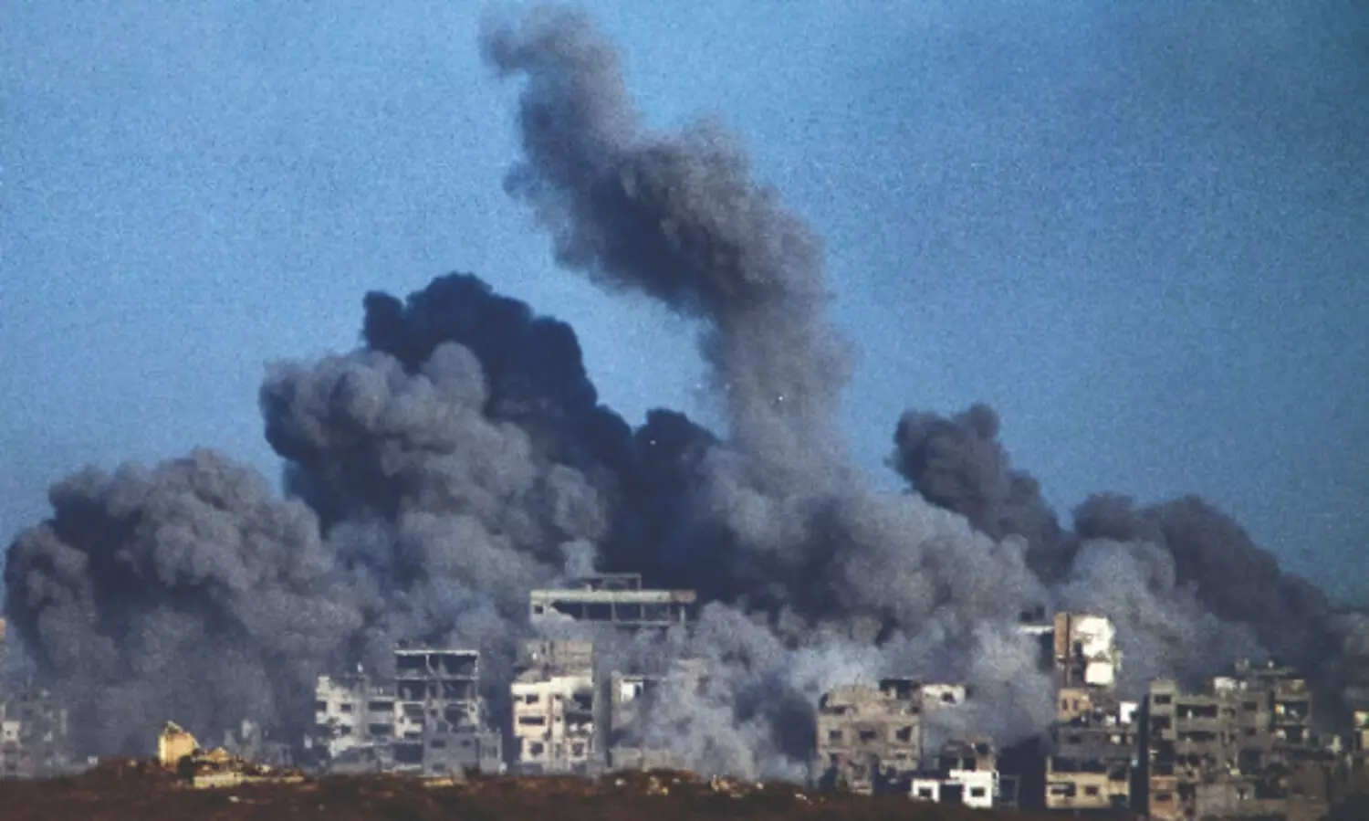 CAIRO/GAZA: Israeli planes and tanks pounded areas across the Gaza Strip overnight and on Sunday, destroying several residential buildings, witnesses said, as Palestinians desperately awaited implementation of a U.S. plan to end the war.