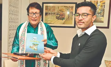 Abhishek visits Ranjit Mallick’s house, presents ‘Unnayaner Panchali’