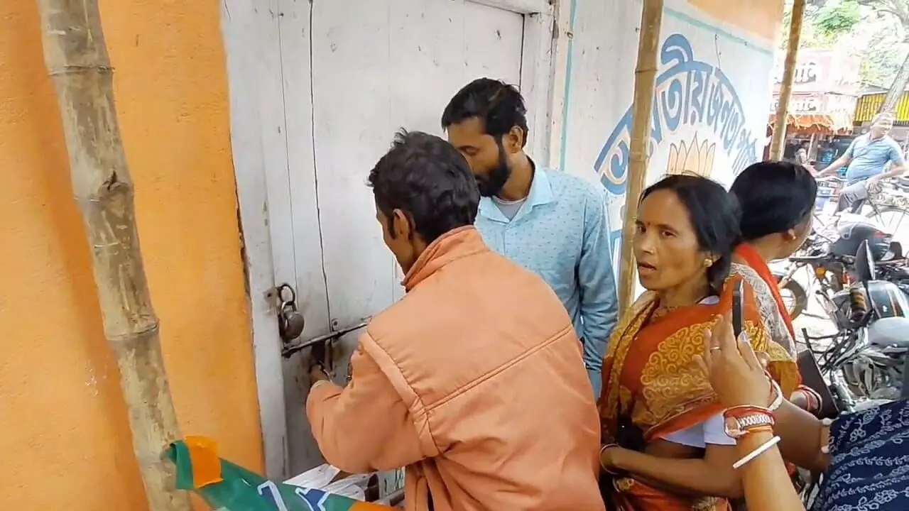 In Maynaguri, a crucial seat in the tea belt, dissident BJP workers on Wednesday locked the party office, demanding the reinstatement of outgoing MLA Kaushik Roy as the party candidate. Protesters alleged that the leadership had unfairly replaced him with Dalim Roy, a recent entrant from the Trinamool Congress. Some also made unverified claims of monetary exchange in the ticket distribution and warned of protests against supporters of the new candidate.
