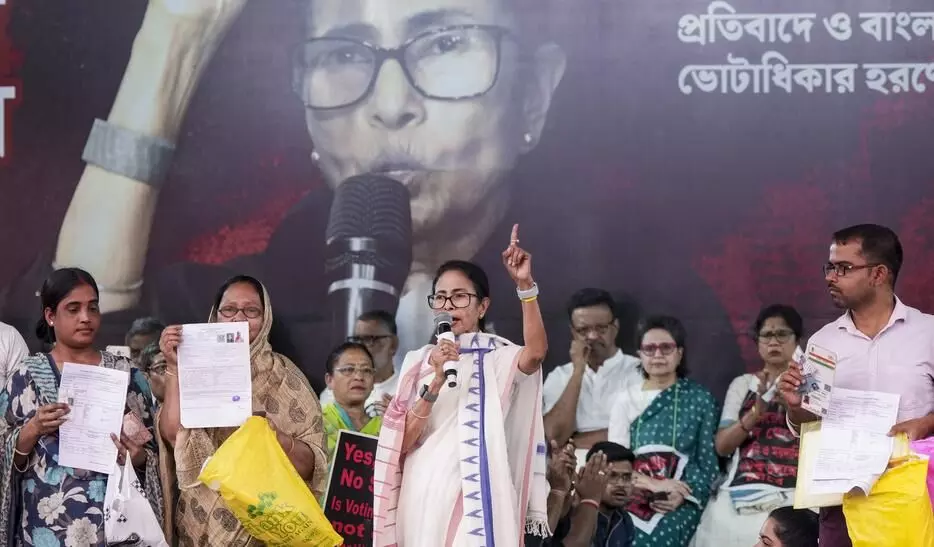 Kolkata: West Bengal Chief Minister Mamata Banerjee's sit-in against alleged arbitrary deletions in the post-SIR voter list entered the third day on Sunday, with the TMC supremo accusing the BJP of "misusing the Vanish Commission to erase legitimate voters from electoral rolls".