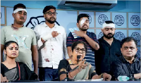 Panja said “Boycott BJP” posters at her Girish Park residence were torn down by BJP workers, and TMC supporters were attacked when they tried to restore them. She also claimed to have sustained shoulder and waist injuries from stones thrown.