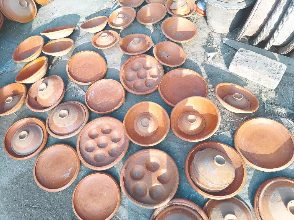 advance orders. Veteran seller Kanika Pal, who has been selling soras in Mahinagar for the past 25–30 years, said she makes the items herself, which helps increase her earnings. “The demand from Balurghat and adjoining areas is very high. Every day, customers visit my shop. The smallest sora costs Rs 15 and the largest Rs 25 here. Earthen soras are indispensable for the Poush festival,” she said.