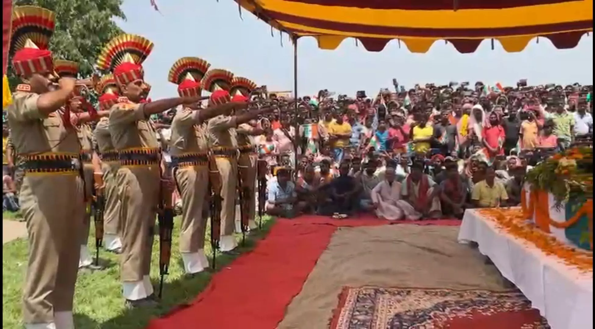 His mortal remains, draped in the national flag, were brought to his native village on Sunday. BSF and police officials paid their last respects with full state honours, including a ceremonial gun salute. The village resonated with slogans of “Bharat Mata Ki Jai” and “Shaheed Mithun Mondal Amar Rahe,” as grieving residents gathered in large numbers.