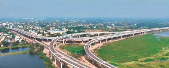 The signal-free, 4–6-lane corridor with 21 flyovers will cut travel time from Kalyani to Kolkata Airport from two hours to just 40 minutes.