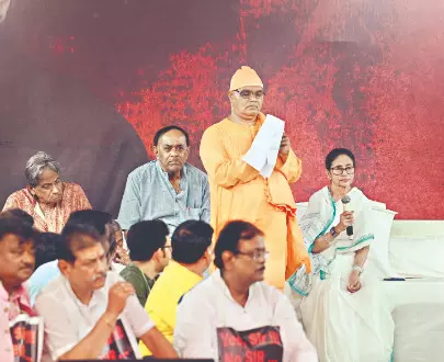 Monk joins Mamata’s protest, says name missing from voter list