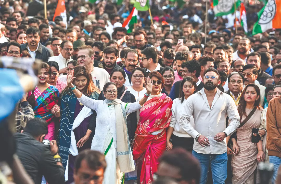 As the street mobilisation unfolded, the confrontation simultaneously spilled into the judicial arena, with the Calcutta High Court adjourning till January 14 the hearing on petitions related to the ED’s search and seizure operations at sites linked to I-PAC, citing unmanageable chaos inside the courtroom.