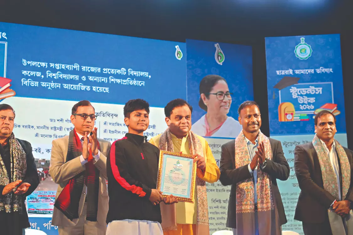 Kolkata: At the Students’ Week closing ceremony, meritorious students from across the state were felicitated for their accomplishments in sports and other school competitions.