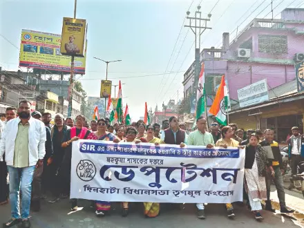 Cooch Behar: The Trinamool Congress on Wednesday organised a protest march in Dinhata town, alleging large-scale harassment of voters during the Special Intensive Revision (SIR) process being conducted by the Election Commission. The march began from Subhash Bhavan and passed through various streets of the town before culminating in front of the office of the Dinhata Sub-Divisional Officer (SDO).