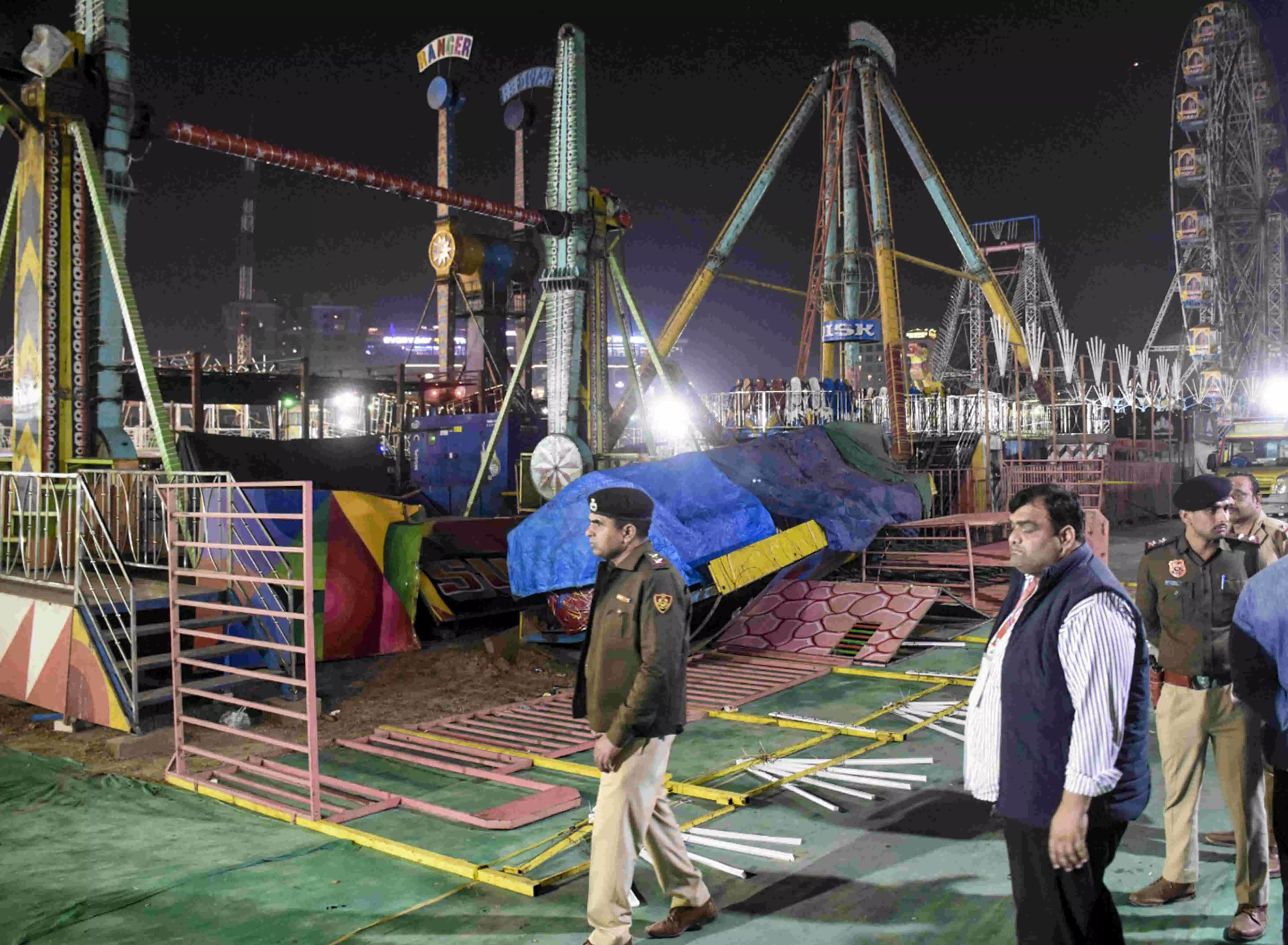 Faridabad: An on-duty police inspector was killed and 11 people were wounded at the Surajkund fairgrounds on Saturday when a giant swing snapped mid-air and collapsed, just an hour after a gate fell down, injuring two persons including a child, officials said.