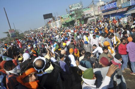 New Delhi: As protests at Delhi-Haryana's Singhu border continued on Saturday, langars was distributed to thousands of people as more joined in solidarity with the farmers who have been sitting on dharna at the border highway since Friday. Meanwhile, a full hour langar service was also started at the protest site.