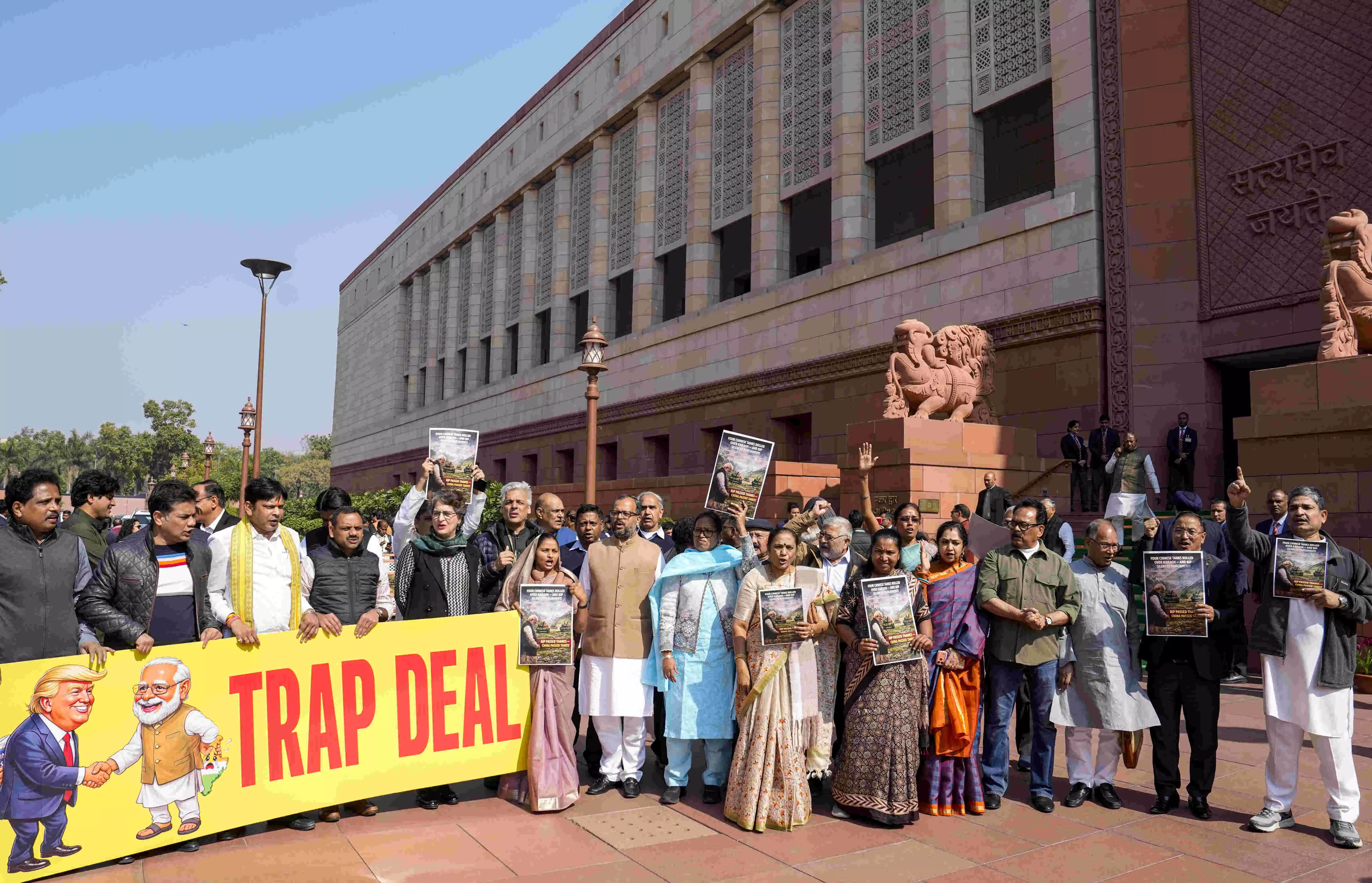'Trap deal': Cong MPs protest against govt in Parliament complex